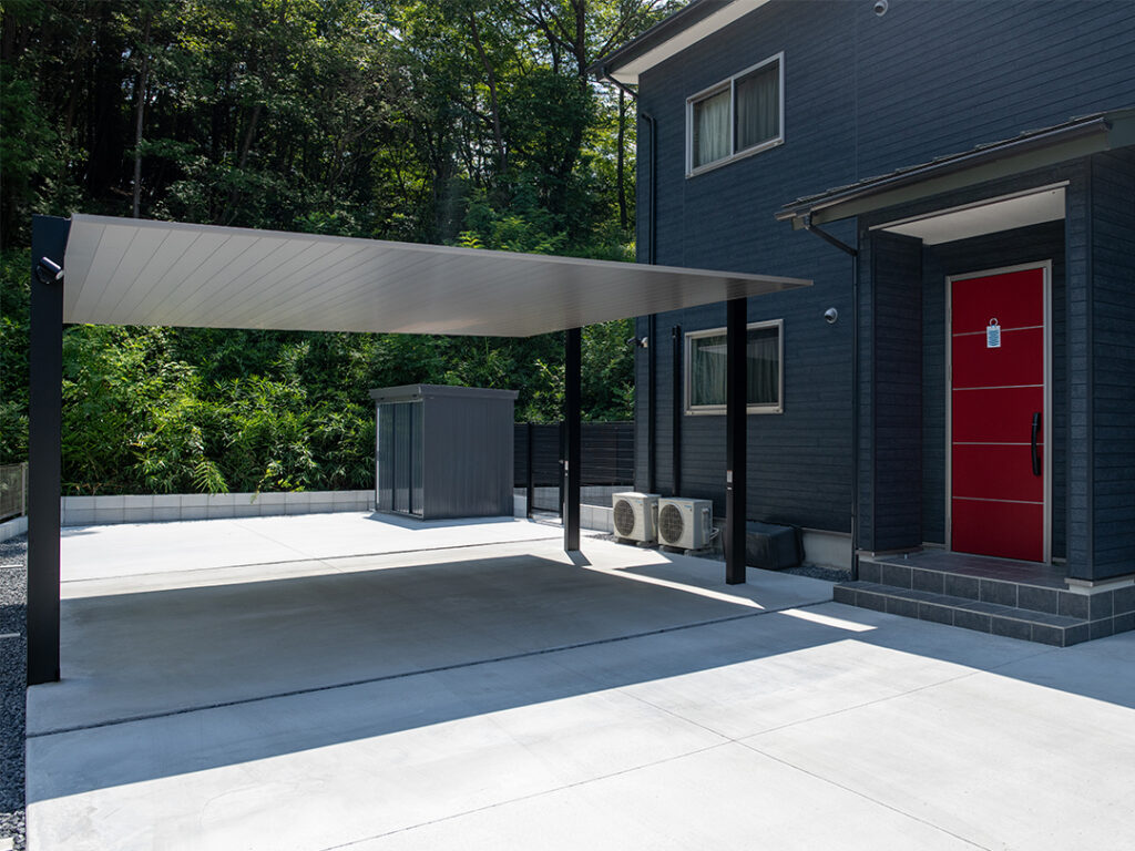 外壁とフェンスの調和 外壁と同じ黒をフェンスにも採用することで、お庭と家の一体感がアップ。 スタイリッシュでモダンなデザインのフェンスが、家の外観を引き立てます。 高級感とシンプルさを兼ね備えたデザインが、現代的な住まいにぴったりです。 耐久性に優れた素材を使用しており、長く美しさを保ちます。